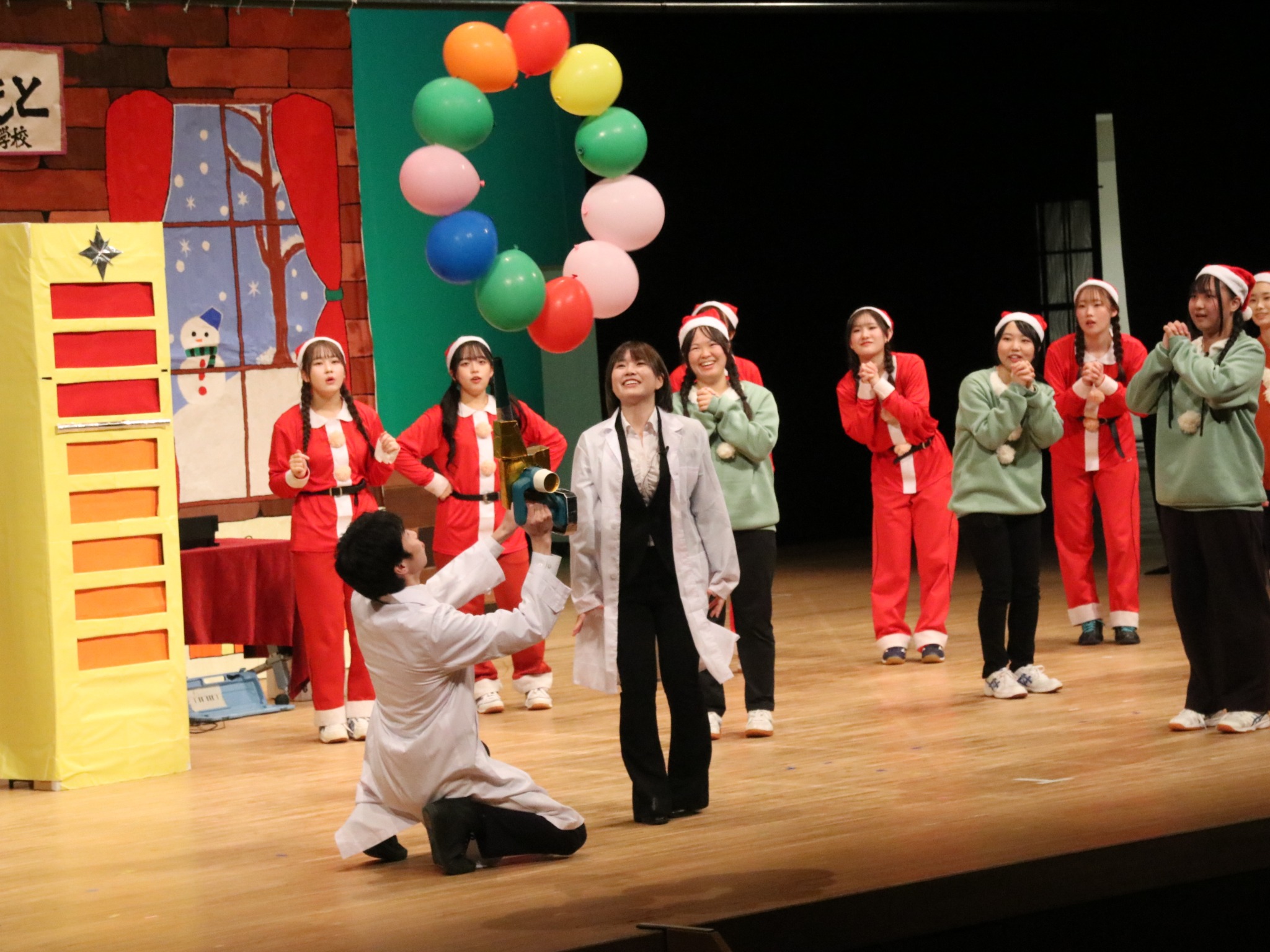 本学は、現場の即戦力に対応する講義・演習の集大成として、大分市、別府市の2会場で毎年公演しています。こどもたちへのひと足早いクリスマスプレゼントとしてご好評いただき45年めを迎えることができます。R5年度より完全予約制を撤廃し、R6年度は2,180人来場のこどもたちに届けることができました。背景幕、大道具、小道具、衣装すべて手作りなんだよ♪「愛と感動の教育」を皆さんもぜひ一度ご体験ください。